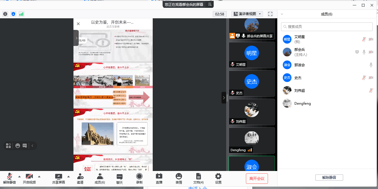 会议还传达了《关于开好党史学习教育专题组织生活会的通知》(湖工党字〔2021〕25号)文件精神,并对开好支部党史学习教育专题组织生活会作出具体安排,要求全体党员增强“四个意识”、坚定“四个自信”、做到“两个维护”,深入落实立德树人根本任务,切实把党史学习教育转化为建设“国内应用型一流大学”的强大动力,以优异的成绩向中国共产党成立100周年献礼。