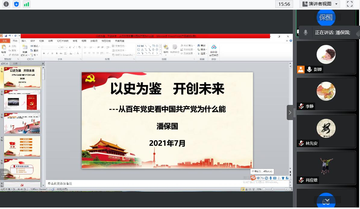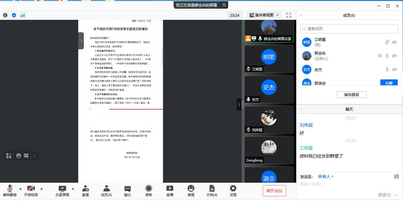 7月15日、16日,永利集团3044noc登录入口教工一支部、教工二支部分别以腾讯会议的形式开展“支部书记讲党史专题党课”暨7月份支部主题党日活动,教工一支部书记潘保国、教工二支部书记郝会兵分别为支部党员讲党史学习教育专题党课。