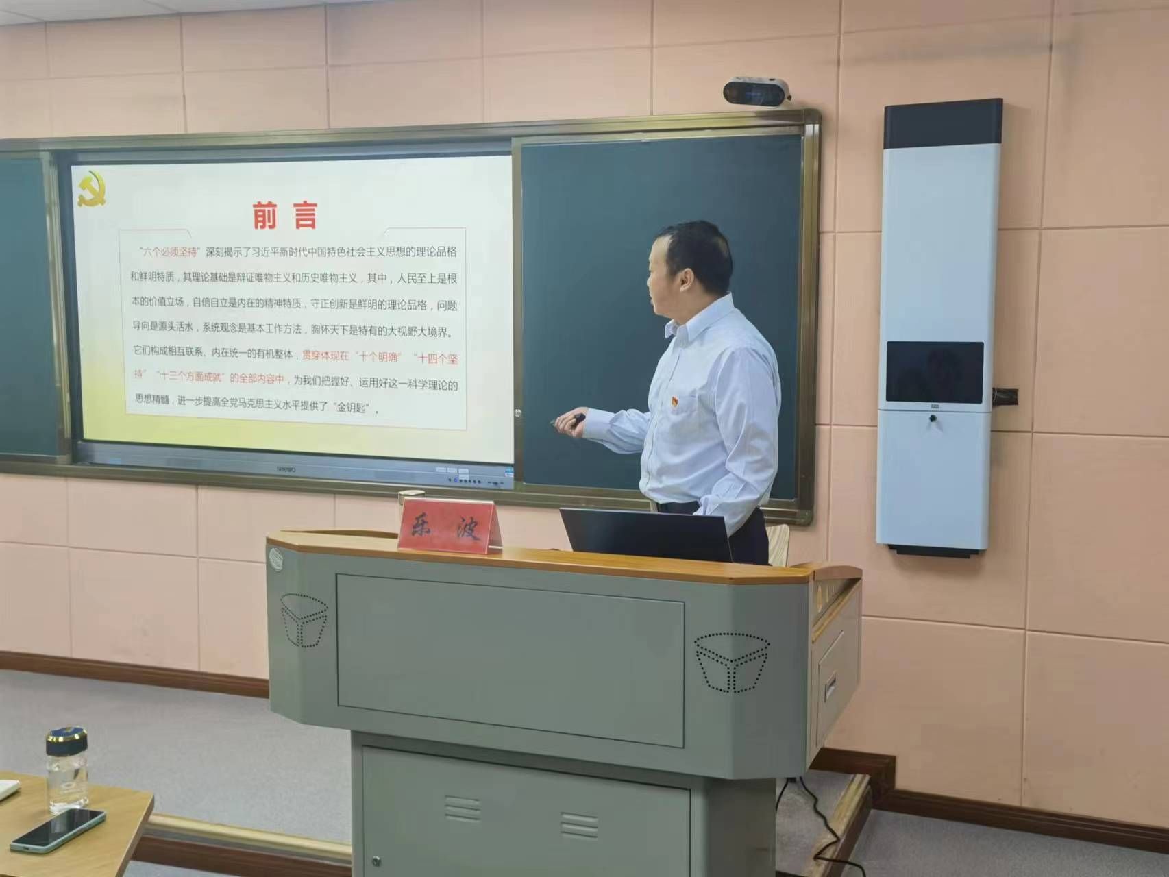 随后,专家辅导报告。永利集团3044noc登录入口特邀马克思主义永利集团3044noc登录入口院长乐波教授为大家作了题为《习近平新时代中国特色社会主义思想的世界观和方法论》专题报告。乐教授从习近平新时代中国特色社会主义思想世界观和方法论的实践依据;科学内涵;丰富发展三大块作了一场生动而振奋人心的报告。