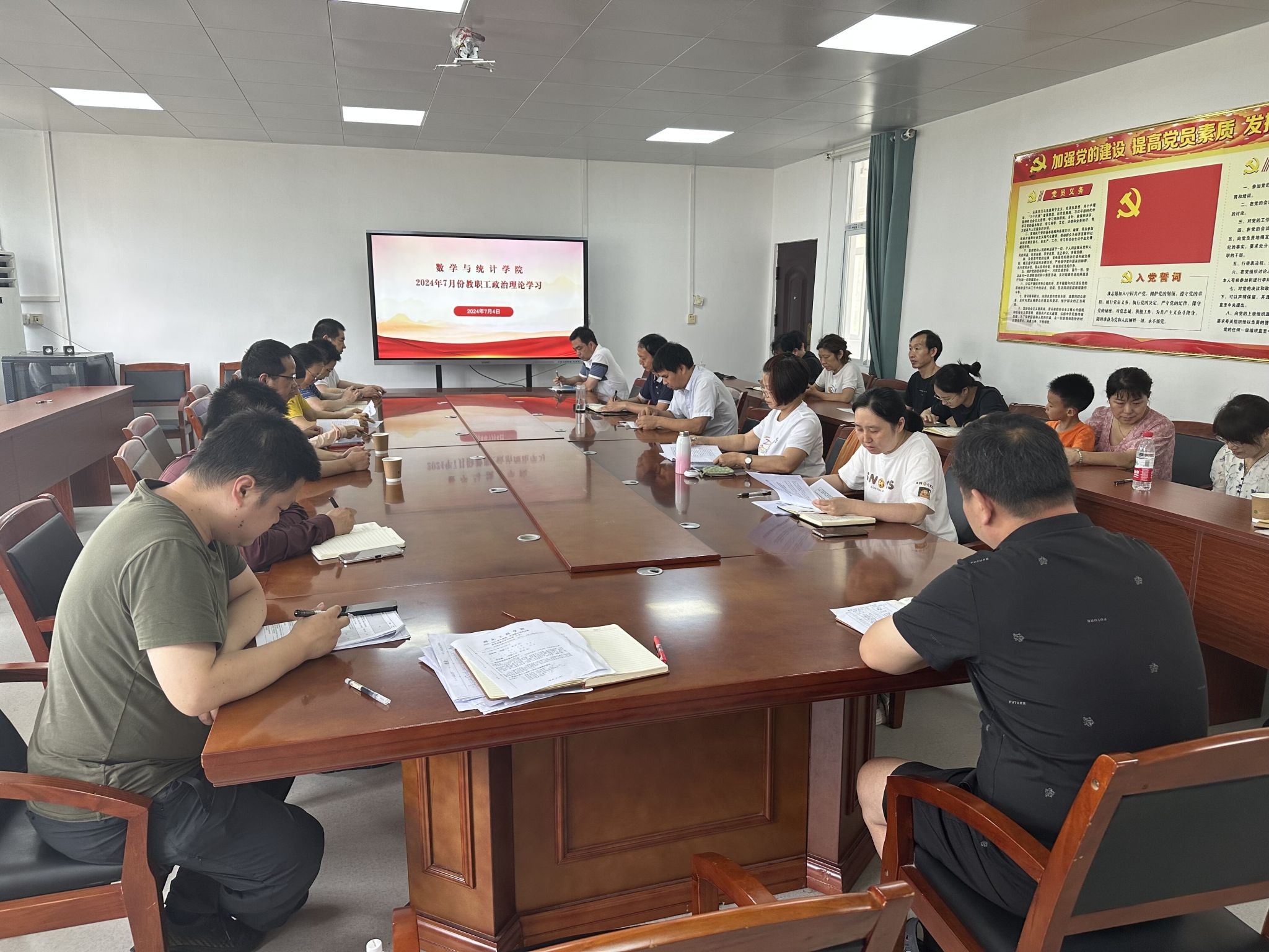 7月4日下午,永利集团3044noc登录入口在三楼会议室召开全体教职工大会暨七月份教职工政治理论学习会议,全体教职工参加学习,院党委书记王晶主持会议。
