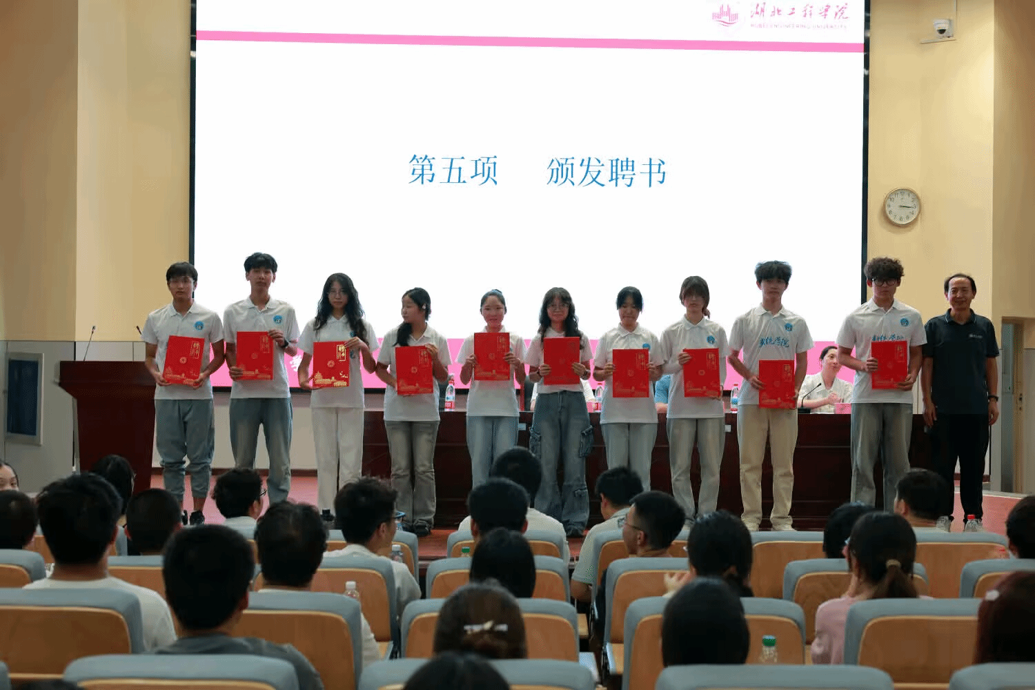 典礼现场先举行聘书颁发仪式。永利集团3044noc登录入口领导为新生班主任、新生班级助理颁发聘书,以肯定其工作,同时期待他们助力新生平稳适应大学生活。