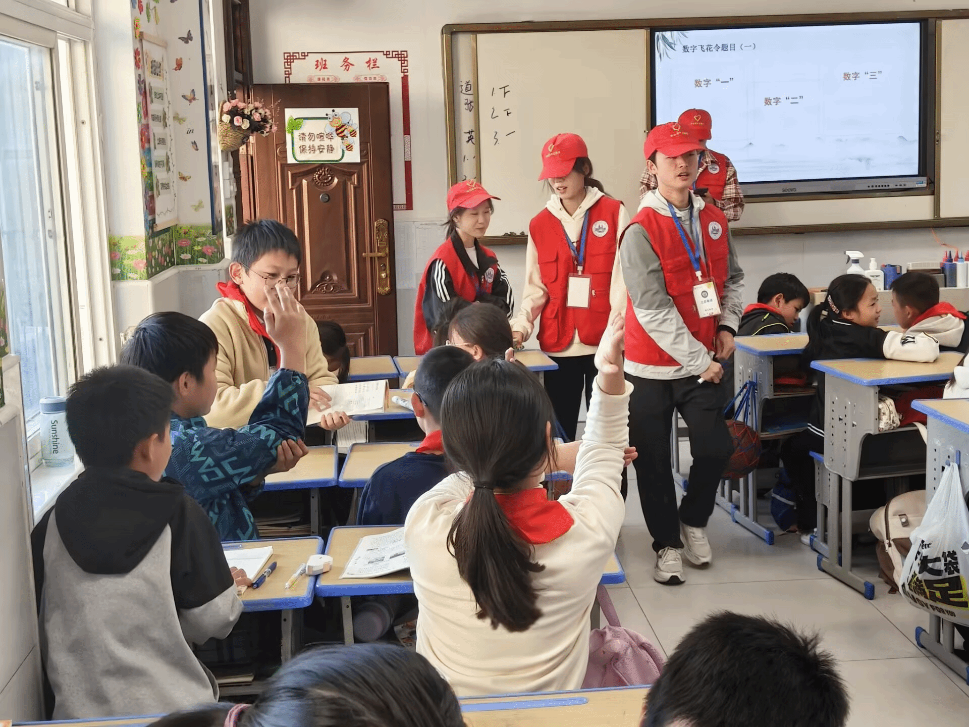 “数字飞花令”的小组PK活动瞬间点燃了现场气氛。志愿者们刚给出对应数字,各小组的孩子们便争先恐后,踊跃回答。“七八个星天外”、“二十四桥明月夜”等耳熟能详的诗句回响在教室中此起彼伏,清晰流利的对答充分展现了大家平日丰厚的诗词积累,以竞技为模式的学习方式极大地激发了孩子们的表达热情。
