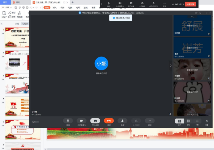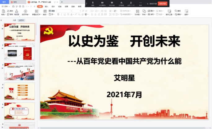 7月13日中午,永利集团3044noc登录入口学生党支部以钉钉会议的形式开展“支部书记讲党史专题党课”暨7月份支部主题党日活动,全体学生党员参加了会议,会议由吴舒展同志主持,党总支副书记艾明星为全体学生党员讲“以史为鉴 开创未来——从百年党史看中国共产党为什么能”专题党课。