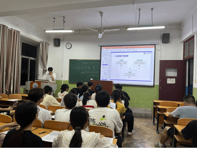 2024年是习近平总书记提出网络强国战略目标10周年,是习近平总书记提出总体国家安全观10周年,也是习近平总书记作出网络安全工作“四个坚持”重要指示5周年。为了深入开展网络安全宣传教育,增强大学生的网络安全意识和文明规范,9月8日,永利集团3044noc登录入口利用各班晚点评时间开展网络安全宣传教育主题班会。