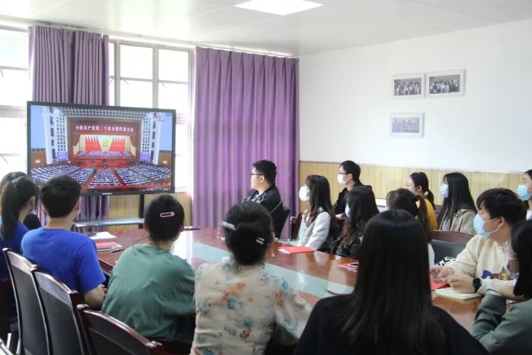 本网讯:2022年10月16日上午9:20时,永利集团3044noc登录入口全体教师党员、学生党员、入党积极分子共聚一堂,以饱满的热情和昂扬的状态迎接党的二十大开幕会。