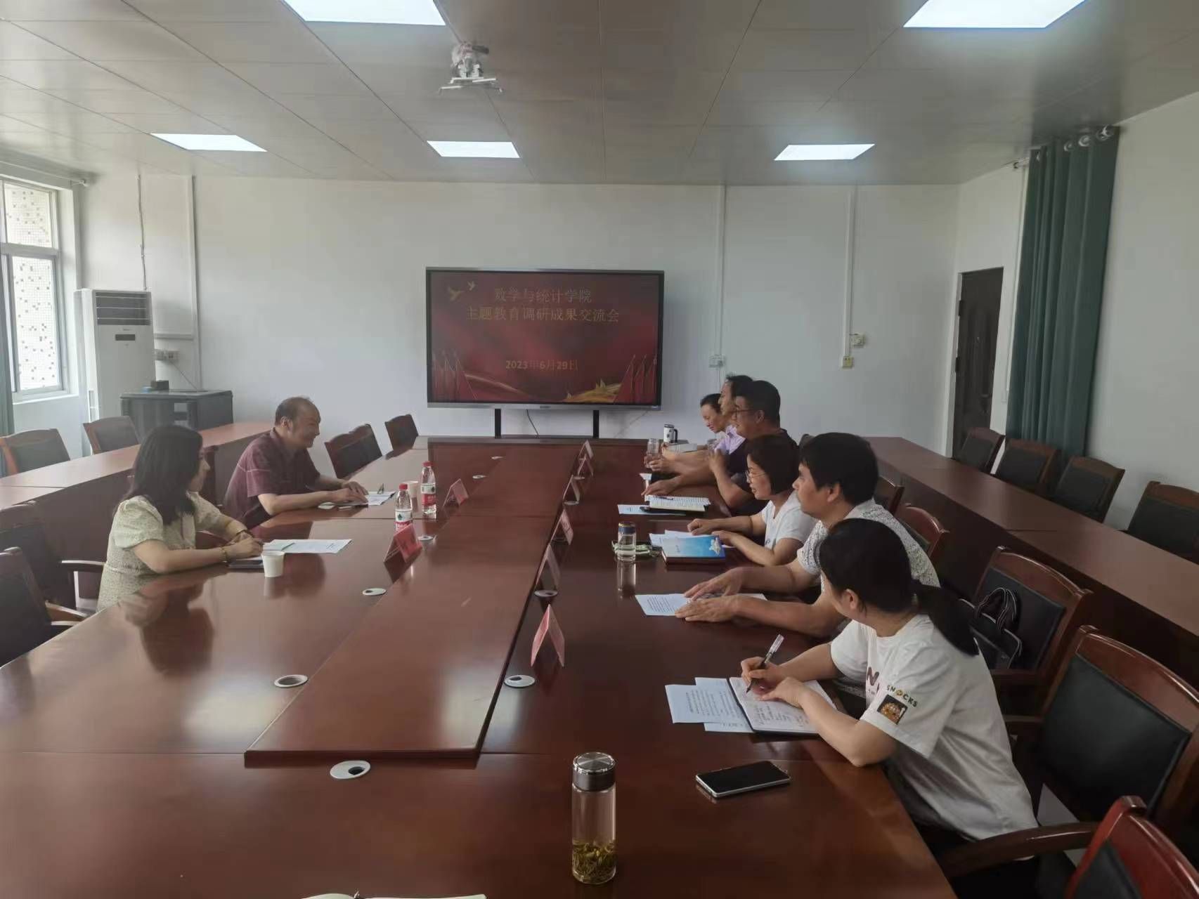 其次,党委班子成员依次进行课题调查研究成果交流汇报。每个班子成员针对个人的课题进行了认真的问卷、分析、调查,分别取得了一定的实效,王晶书记强调,希望各位班子成员继续扎实推进此项工作,将主题教育走深走实。