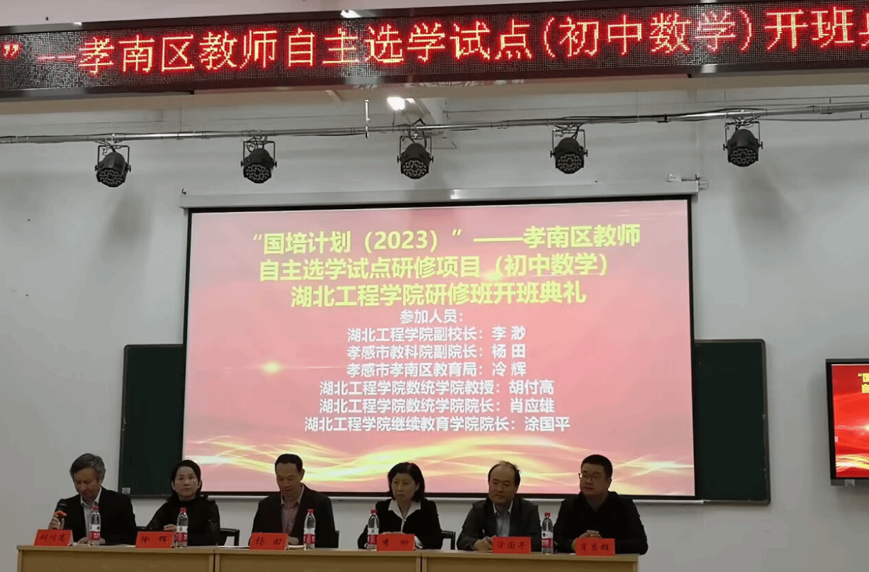 2023年11月1日上午,国培计划(2023)”——孝南区教师自主选学试点研修项目(初中数学)在永利集团3044noc登录入口隆重开班。永利集团3044noc登录入口副校长李渺、孝感市教科院副院长杨田、孝南区教育局冷辉、继续教育永利集团3044noc登录入口院长涂国平、永利集团3044noc登录入口院长肖应雄出席典礼。项目负责人胡付高教授主持典礼。来自孝感市孝南区各中学的100名数学骨干教师参加了开班典礼。