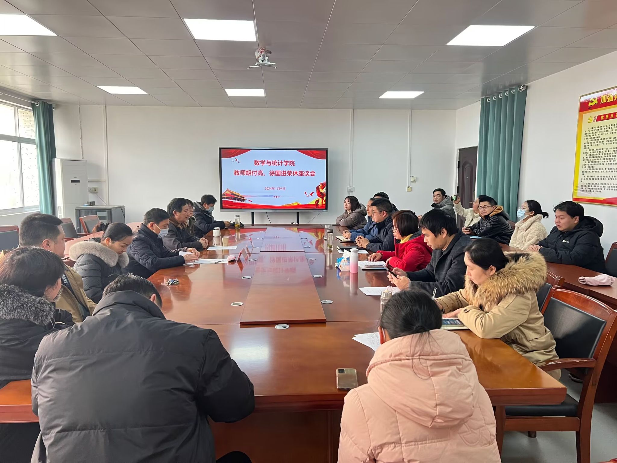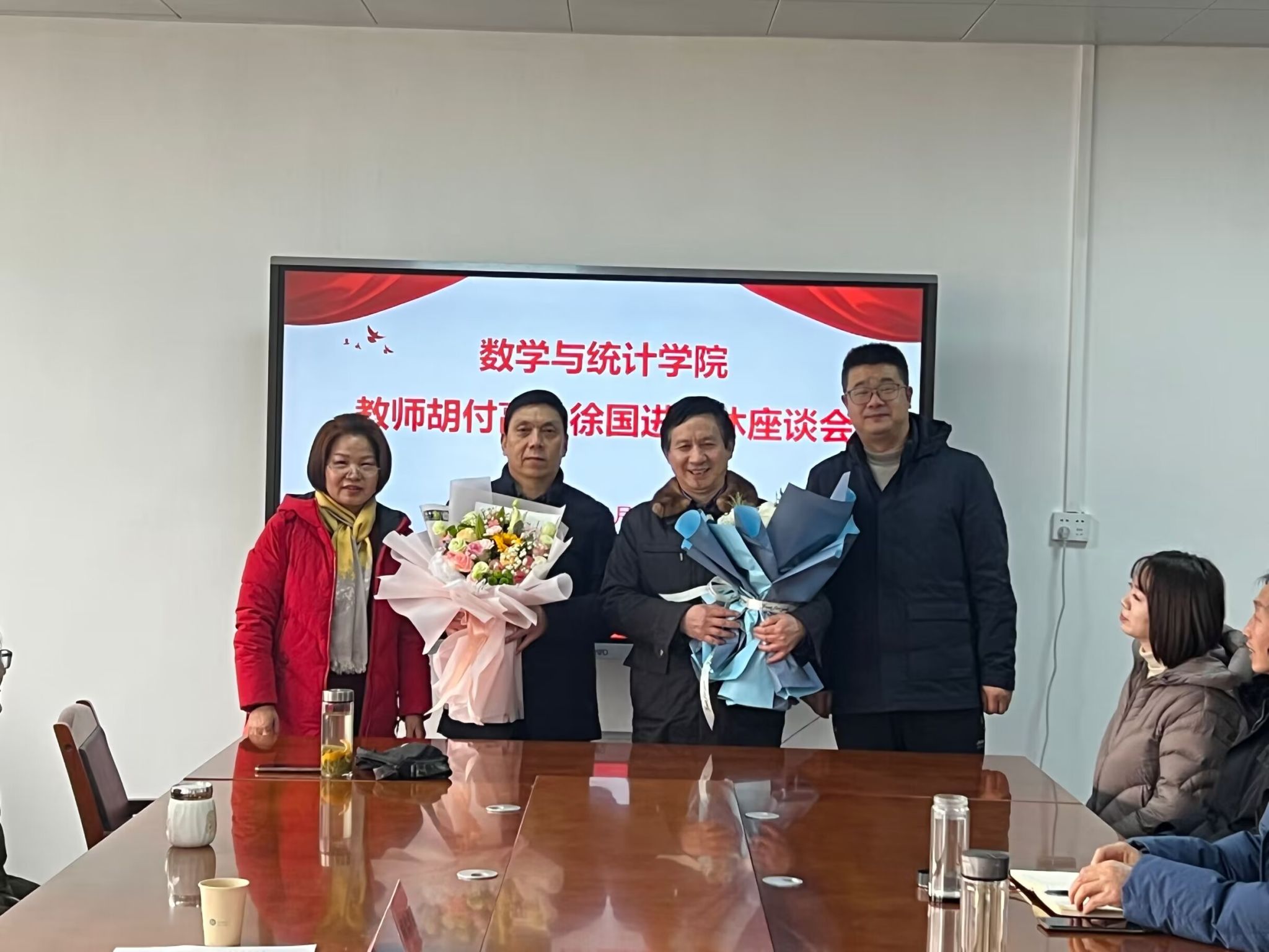 岁月染芳华 桃李育芬芳。为表达对耕耘数载的退休教师的感谢与敬意,进一步激励年轻一代教师传承前辈的育人精神,2024年1月9号下午3点,永利集团3044noc登录入口在教6三楼会议室举办了胡付高、徐国进两位老师荣休座谈会。永利集团3044noc登录入口全体领导班子、教师代表参加了会议。座谈会由院党委书记王晶主持。