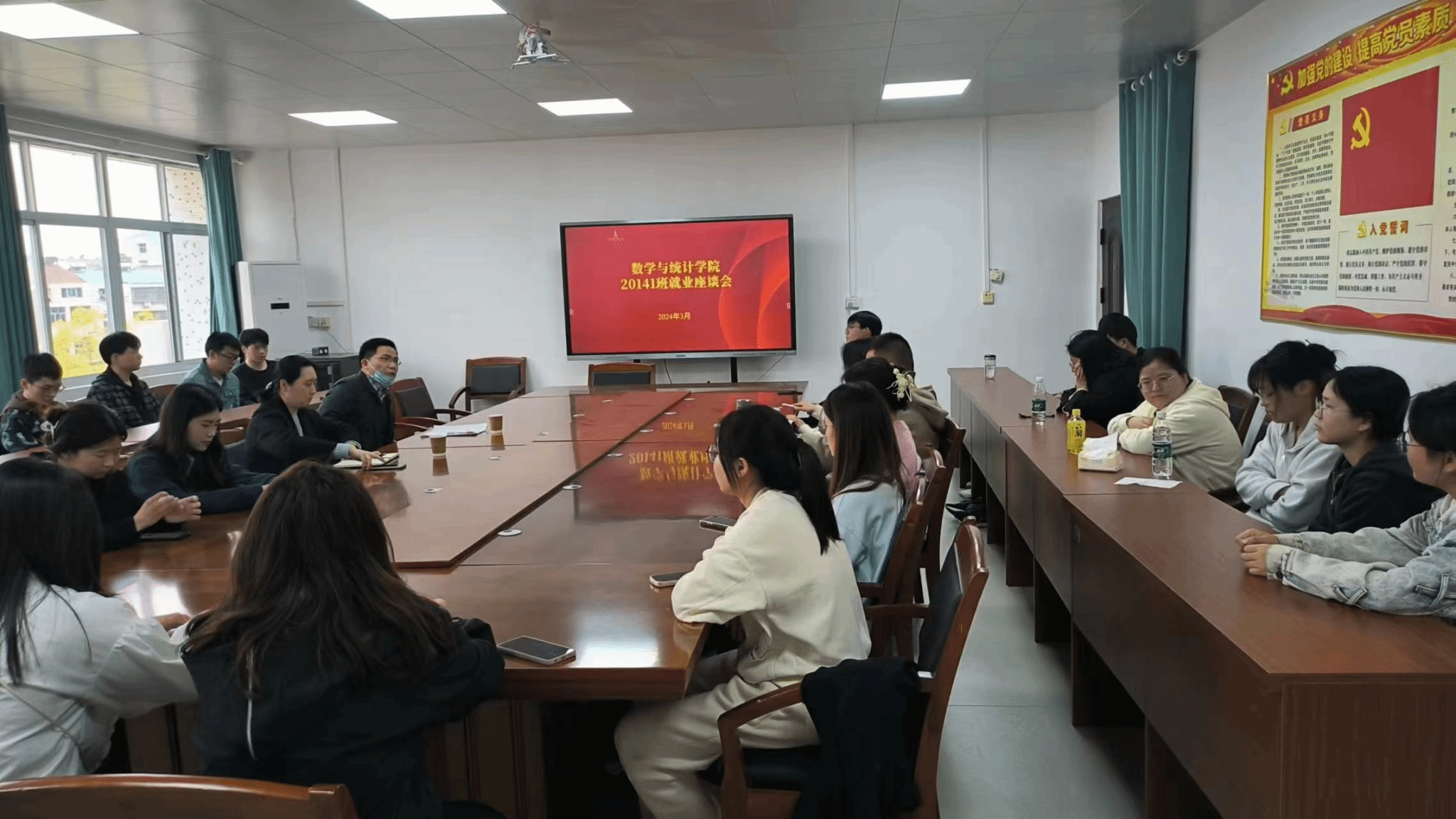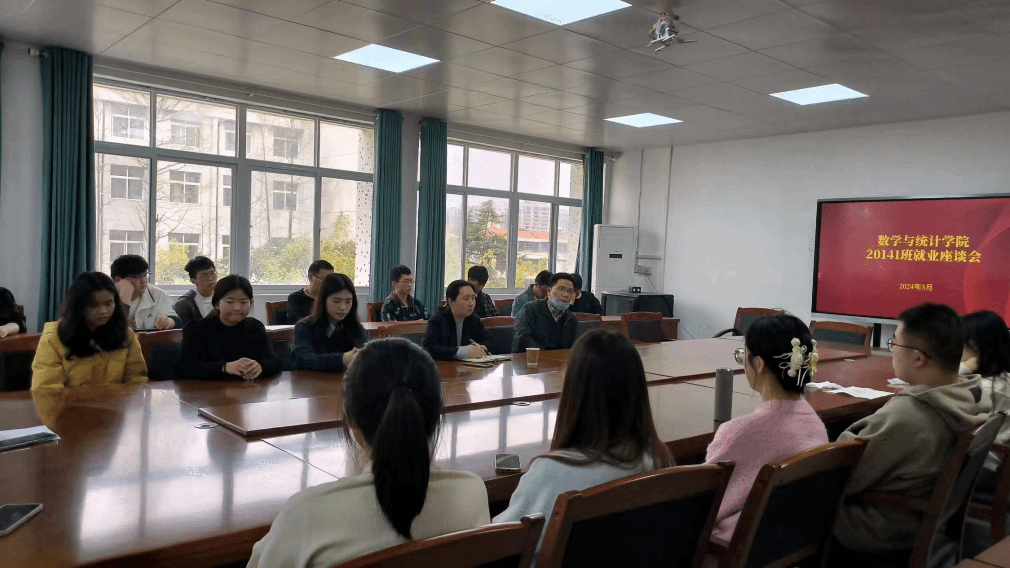 吕登峰博士对同学们在就业过程中需要注意的因素、考公和求职应聘准备、三方签署问题等方面进行了具体地指导。毕业班辅导员马灵通介绍了当前各班的就业情况并请在座学生提出就业过程遇到的困难,老师们对学生的问题一一进行了答疑和指导。