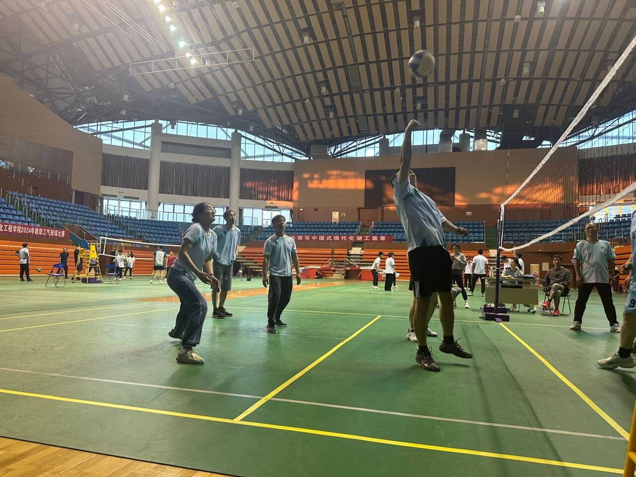 永利集团3044noc登录入口高度重视此次比赛,认真组织策划,积极筹备参赛。院长肖应雄亲自参加,党委书记王晶靠前指挥,为增加团队配合的默契度,工会主席李静组织带领队员利用课余时间进行训练。比赛过程中,老师们热情饱满,在运用技巧的同时,又默契配合,充分发挥团队合力。经过激烈对决,最终永利集团3044noc登录入口气排球队以第五名的成绩斩获该项赛事二等奖。