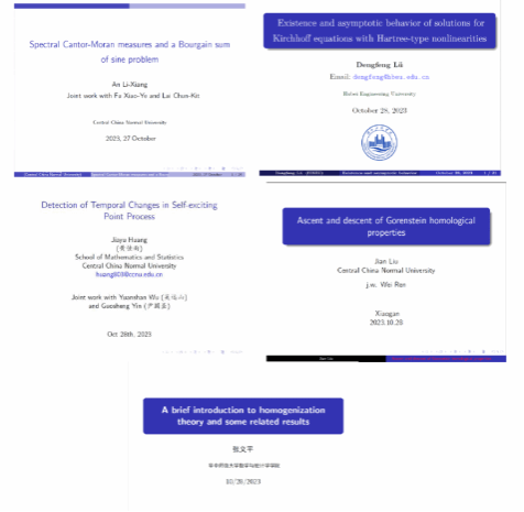 研讨会第二天,作为学校喜迎80周年华诞的系列学术报告,此次邀请了华中师范大学的安丽想、黄佳雨、刘剑、张义平以及永利集团3044noc登录入口的吕登峰等五位博士在研讨会上作学术分享报告。报告主题涉及分形几何、偏微分方程、代数学、大数据以及统计学等学科方向。与会人员被精彩的前沿讲座报告深深吸引,围绕报告内容和前沿应用等踊跃提问交流,纷纷表示收获颇丰。